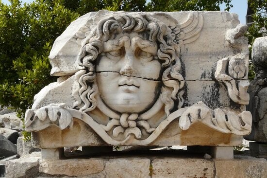 Medusa başı Apollon tapınağında yer almaktadır. Didim'in sembollerinden biri haline gelen ve yüzünün ortasında yarık olan (Yılan saçlı kadın) Medusa, Yunan mitolojisinde yer altı dünyasının dişi canavarı olarak bilinir. Medusa, kendisiyle yüz yüze geleni taşa çevirme yetisine sahiptir. Antik dönemde çok sık kullanılmasının ve önemli olmasının sebebi budur.