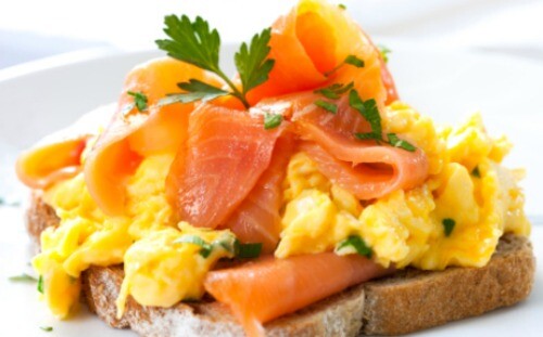 Geçimini balıktan sağlayan Norveç, kızarmış ekmek üzerine yumurta ve tütsülenmiş somon balığı yiyor. Farklı bir tercih.