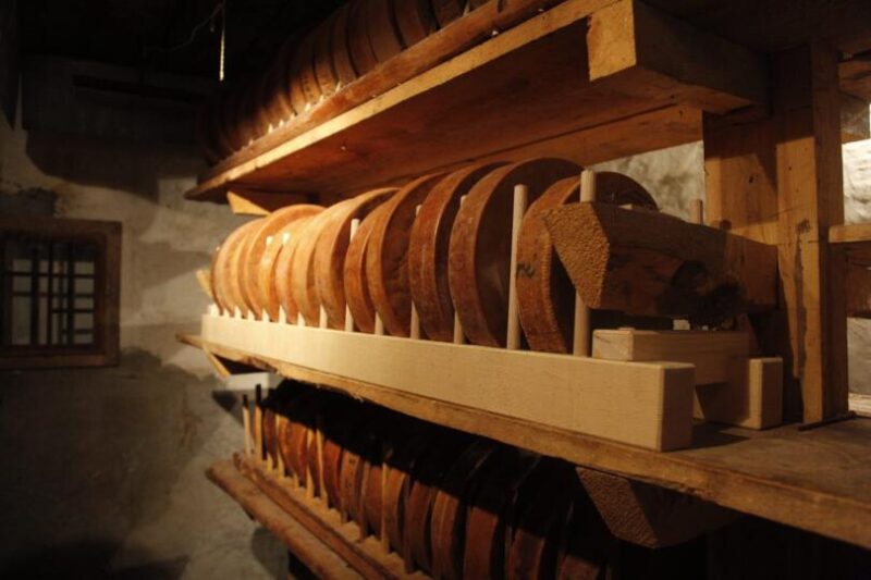 Zufferey, şu anda 149 yaşında olan tekerleklerden birini raftan alıyor. "Dokunabilirsin, kilisedeki bir kalıntı gibi." diye espri yapıyor. Bir bataklık gövdesini andıran parlak kahverengi bir yüzeye sahip, sert ve kösele kaya gibi, hala biraz yağlı, ancak nemden yoksun. Kendi mikropları ve küfleri muhtemelen çoktan ölmüştür. 1967'den edelweiss (alpyıldızı) çiçekleriyle oyulmuş bir tane daha alır. Üçüncüsünde, 1992'den bir "kraliçe ineği" tasvir ediliyordu.
