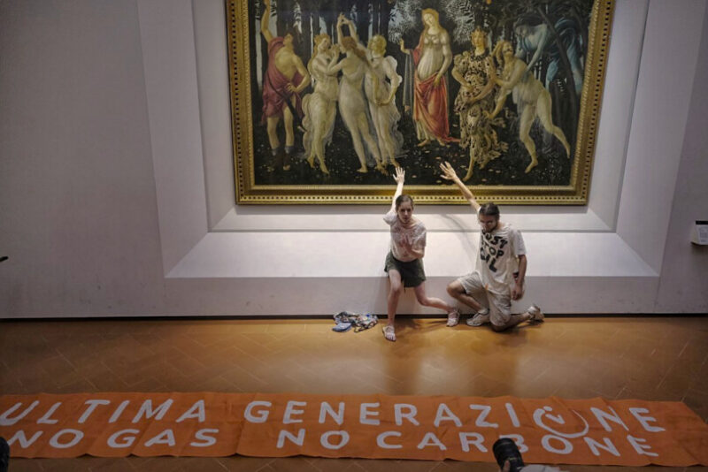 İtalya’da, “Ultima Generazione” (Son Nesil) adıyla, iklim değişikliği karşıtı bir grup aktivistin kurduğu örgüt, “ekoklimatik çöküşe karşı şiddetsiz sivil itaatsizlik mottosuyla” dünya çapında ses getiren eylemlerine devam etmektedir. Geçtiğimiz günlerde neredeyse hepimiz bu grubu, Floransa’daki Uffuzi Galerisi’nde fosil yakıtları protesto etmek için yaptıkları eylemle tanıdık. Ultima Generazione’deki üç aktivist, Sandra Boticelli’nin Primavera (İlkbahar) isimli tablosuna, daha doğrusu tablo önündeki koruma camına kendilerini yapıştırmış; o esnada gruptaki başka bir aktivist ise “Son nesiliz, gaz yok, kömür yok” yazılı bir pankart açarak eyleme destek vermişti. Sanat camiasında çok konuşulan bu protestonun ardından üç kişi gözaltına alınmıştı. Protestocular, eylem hazırlığı yaparken sanat eserinin zarar görmemesi için restorasyon uzmanlarına danıştıklarını ve esere zarar vermeden kendilerini yapıştırmanın yöntemlerini aradıklarını belirtmişlerdir. İnternet sitesinde yapılan açıklamada, “Sanatsal mirasımızı savunduğumuz gibi, dünyanın geri kalanıyla paylaştığımız gezegenin bakımına ve korunmasına kendimizi adamalıyız” ifadesiyle küresel anlamda yaşanan iklim krizine işaret etmişlerdi. Müze yetkilileri tabloya zarar gelmediği açıklamasında bulunarak içimizi rahatlatmıştı. Ultima Generazione’nin Primavera tablosunu neden seçtiği konusunda bir açıklık getirilmemişti. Fakat örgütün yaptığı “Bugün bu kadar güzel bir bahar görmek mümkün mü? Yangınlar, gıda krizleri ve kuraklık işleri giderek zorlaştırıyor. Bir alarm çağrısı yapmak için sanatı kullanmaya karar verdik: sosyal ve eko-iklim çöküşüne doğru gidiyoruz.” şeklindeki açıklama neden İlkbahar tablosu? sorusuna resmen yanıt niteliğindedir. Grup, “İtalya, uluslararası alanda sanat ve müze mirasının beşiği olarak tanınmaktadır.” diyerek dünya basınında ses getirmesi adına eylemlerini gerçekleştirmek için bu prestijli müze/galeriyi seçmiştir.