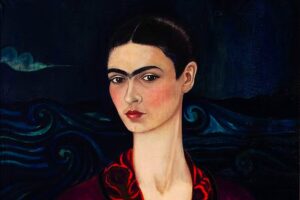 İlk otoportresi, ''Kadife Elbiseli'' otoportredir.1927 tarihinde yürümeye başlayan Frida, sanat ve politika çevreleri ile yakınlaşmaya başlamıştır. Kübalı önder, Julio Antonio Mella ve fotoğraf sanatçısı olan, Tina Modotti ile tanışmıştır.