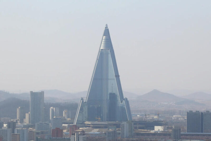 105 katlı üzerinde yirmi yıldır devam eden çalışmalara rağmen, Kuzey Kore'deki Ryugyong Oteli boş ve bitmemiş durumda. Bir dizi gecikme yaşadıktan sonra, cephe tamamlanmış görünüyor (çoğu kişi tarafından göz kamaştırıcı olarak kabul edilse de) ancak iç kısmın bitmiş ve yapısal olarak sağlam olmadığı söyleniyor. Singapur'daki 73 katlı Hotel Swissôtel The Stamford'u geride bırakmanın bir yolu olarak Soğuk Savaş'tan doğan Ryugyong, şimdi "Doom Hotel" olarak adlandırılıyor.