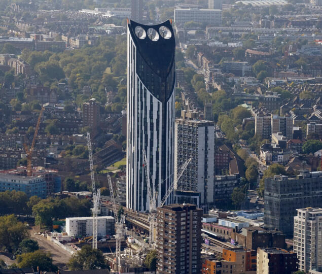 Carbuncle Cup'ın bir başka galibi, Londra'daki 43 katlı bir konut kulesi olan Strata binası, yalnızca görünüşüyle ilgili değil, birçok şikayeti de alıyor. Gökdelenin tepesindeki dev delikler herhangi bir nedenle orada değiller, aslında binanın elektrik ihtiyacının %8'ini sağlaması beklenen üç rüzgar türbini için açıklıklar. Düşüncede asil olmasına rağmen (rüzgar türbinlerini tasarıma entegre eden dünyadaki ilk binaydı) birçok eleştirmen türbinleri yeşil yıkama kanıtı olarak gösterdi. Daha sonra bölge sakinleri, türbinlerin nadiren hareket ettiğini söyleyerek öne çıktılar.