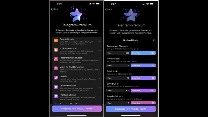 Ödeme yapan kullanıcılar 4 GB'a kadar dosya yükleyebilir ve gönderebilir. Bu arada, Telegram'ın normal ücretsiz sürümünü kullananlar 2GB'lık yüklemelerle sınırlandırılacak. Bununla birlikte, ücretsiz katman kullanıcıları, Telegram Premium kullanıcıları tarafından gönderilen 4 GB'lık dosyaları indirebilir.