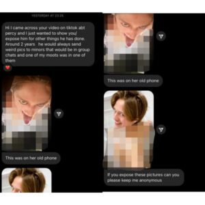 Başka bir kurban ise Percy Hynes White’ın arkadaşına gönderdiğini iddia ettiği fotoğrafları ifşaladı.